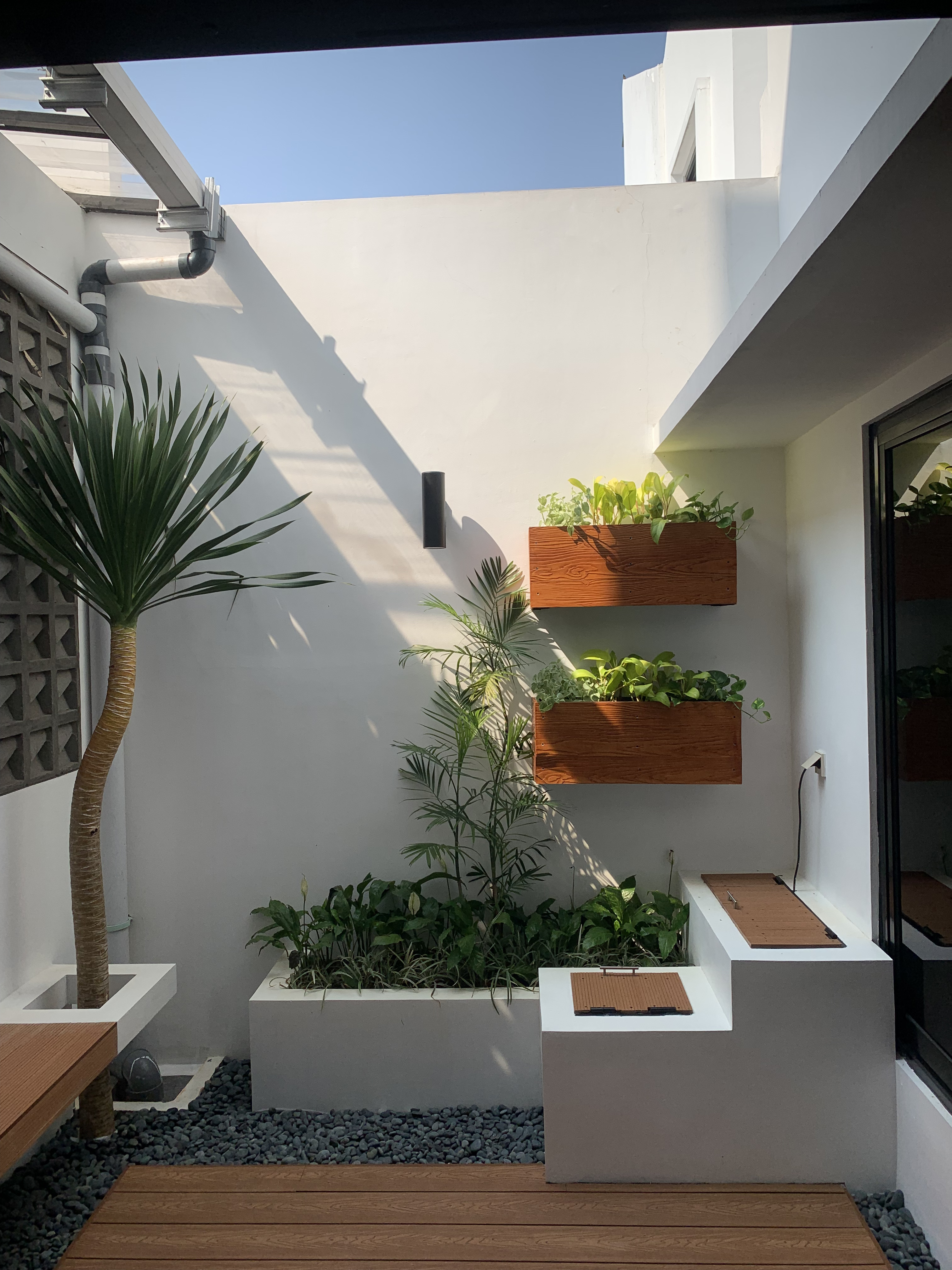Memiliki sudut yang nyaman di area belakang rumah tentu merupakan suatu privilege. Dengan kombinasi nuansa warna-warna earth tone dan susunan tanaman tropis yang tidak berlebihan, outdoor living ini menciptakan suasana yang peaceful untuk sekedar menyendiri atau bahkan untuk menghabiskan waktu bersama keluarga tercinta.